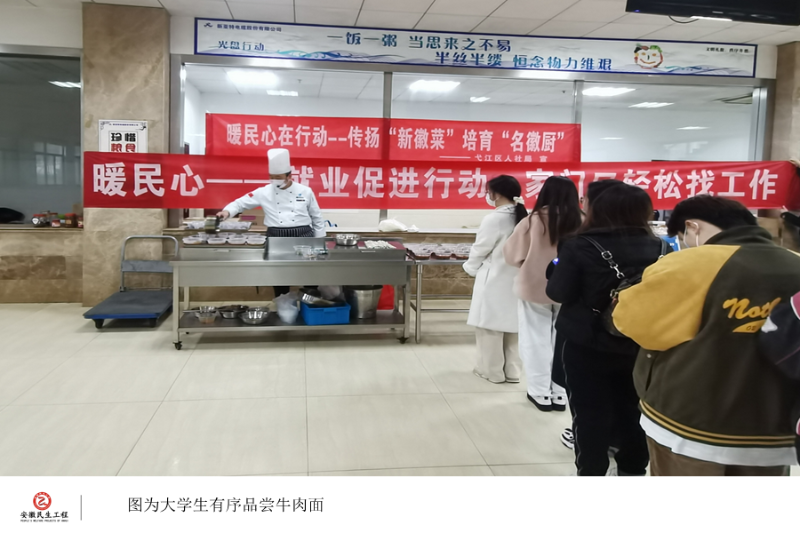 近日,结合“名企职通车”活动,365bet官方博客_365app下载安装官方免费下载_注册送365人社局在新亚特电缆股份有限公司举行了今年首场暖民心行动之新徽菜·名徽厨进企业活动。两位徽菜师傅提前准备了青团和酥烧饼等特色中式面点,现场制作了牛肉面,向企业员工和前来参加“名企职通车”的大学生面对面宣传了新徽菜·名徽厨行动,得到了企业和学生的一致好评。